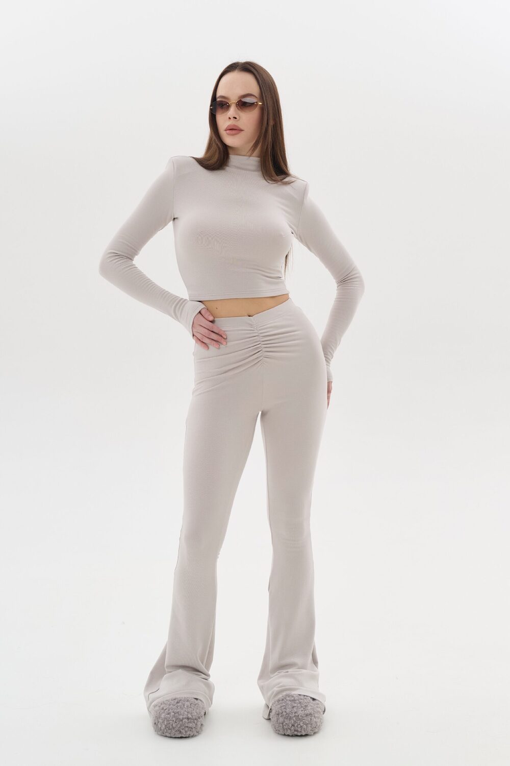 Обновлённая версия брюк-клёш из более плотной и тёплой ткани. Плотная посадка, сборка на ягодицах и расклешенный низ остаются, но теперь ткань идеально подходит для прохладной погоды. Комфортно, тепло и эффектно.