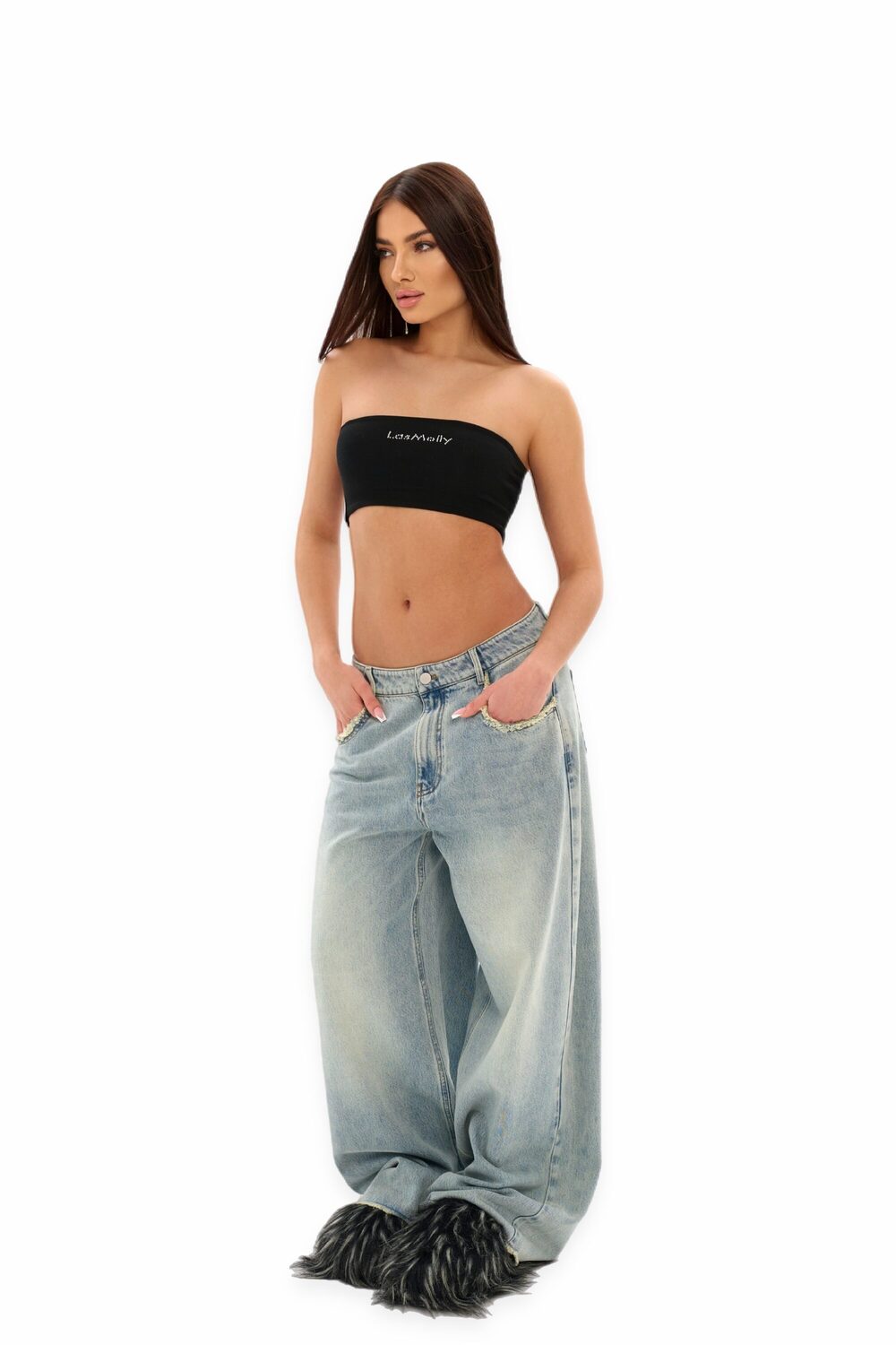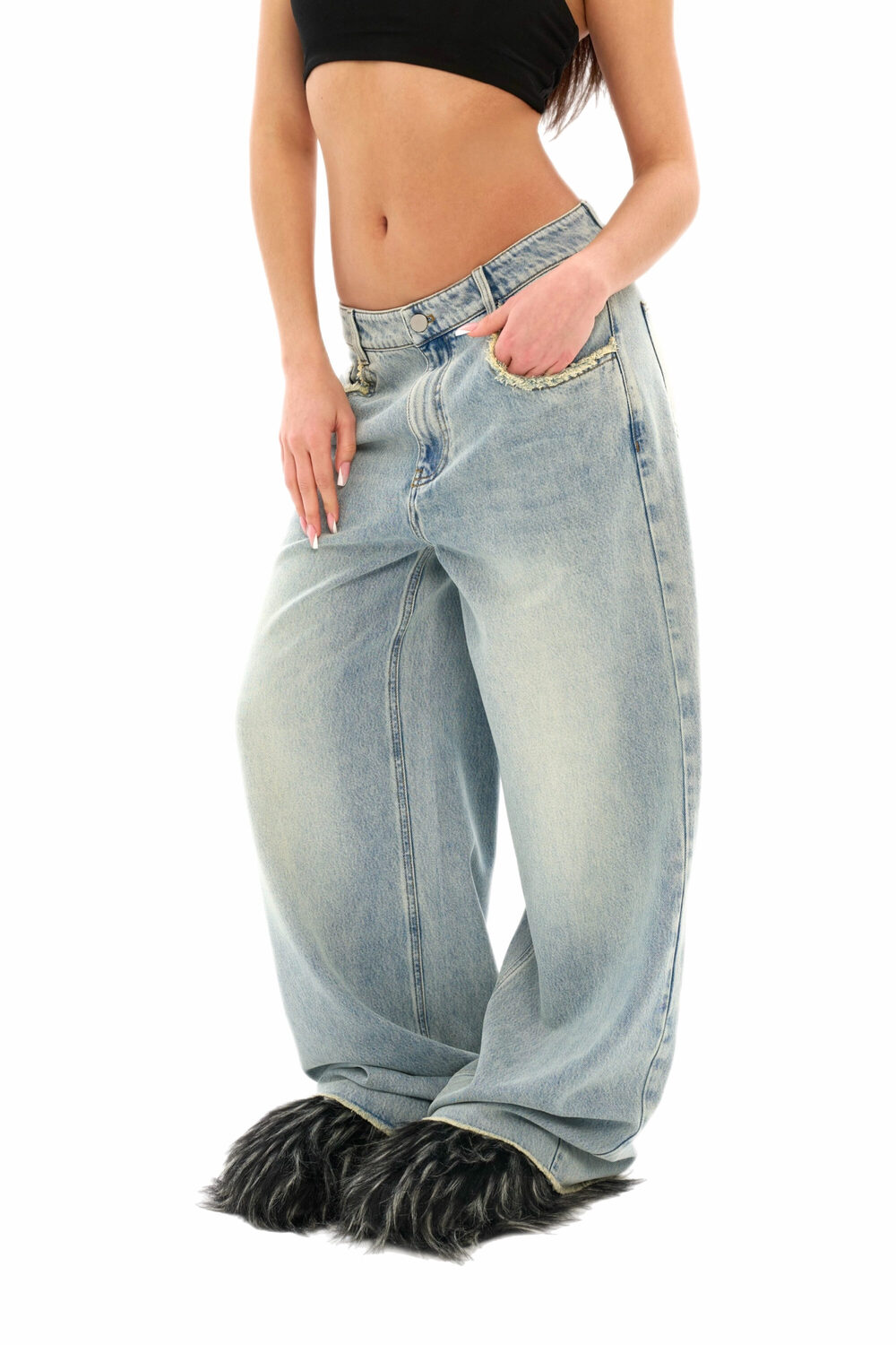 • Эффект необработанных краев карманов и низа штанин