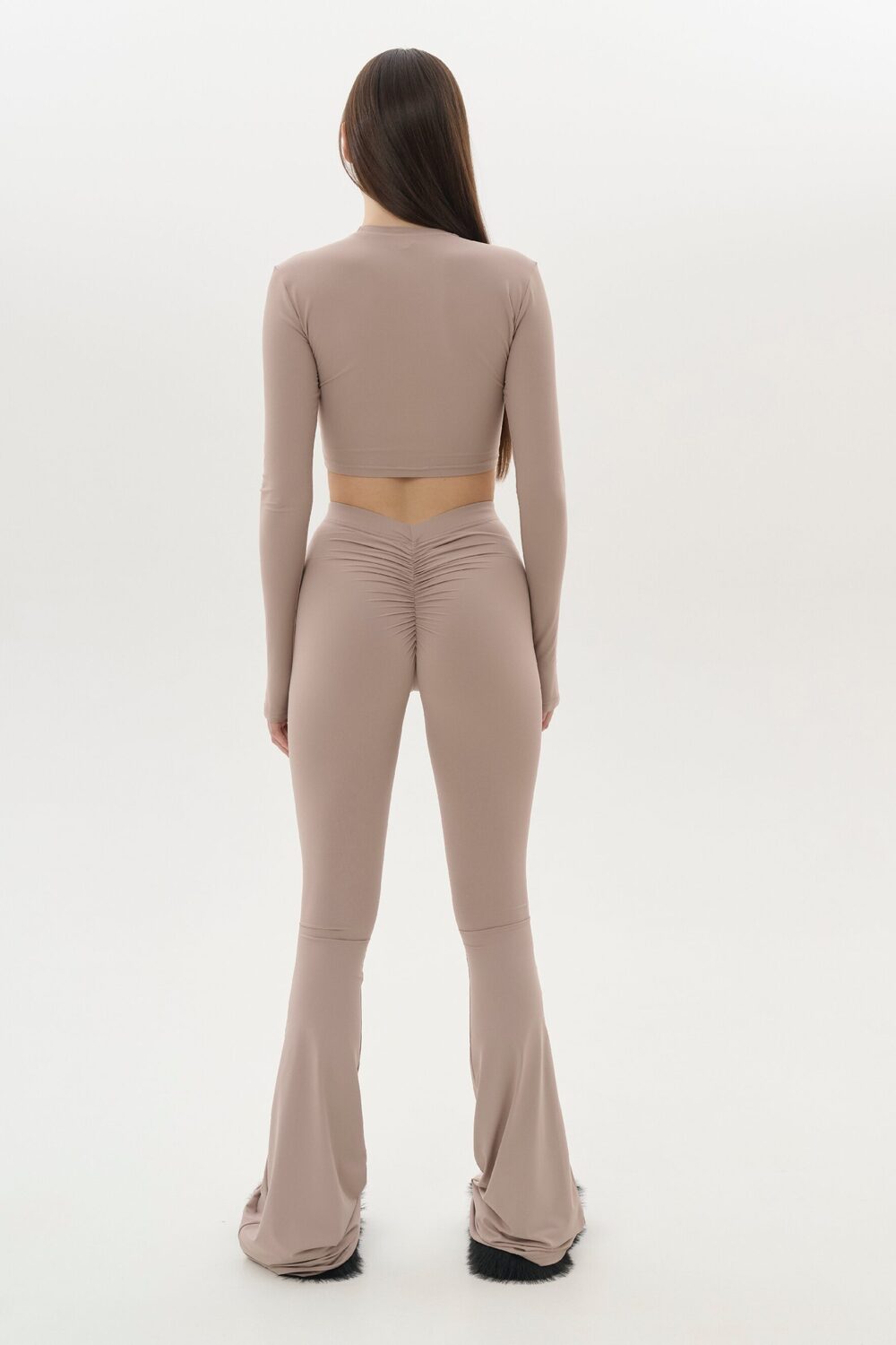 Та же эффектная посадка, но теперь - в версии из бифлекса. Эластичный, приятный к телу материал, который идеально повторяет силуэт и не сковывает движения. Идеален для вечеринок, съёмок и дерзких образов. Ткань с легким глянцевым отливом красиво ловит свет.
