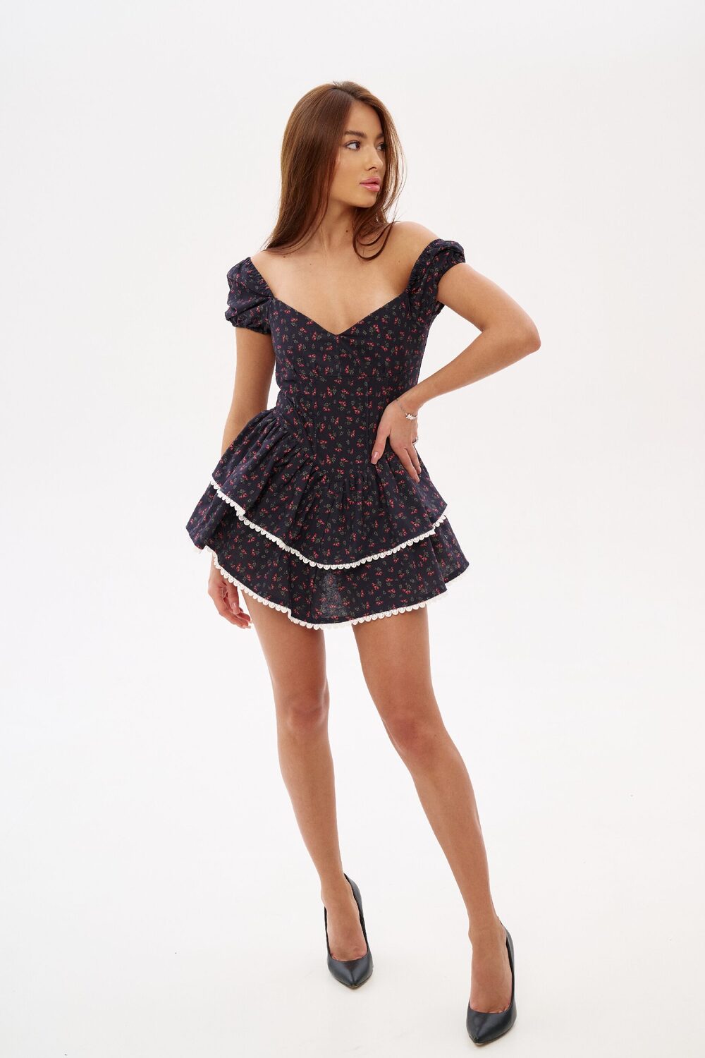 Элегантное платье с приталенным силуэтом и пышной юбкой-клеш создает гармонию структуры и воздушности. Оно акцентирует талию, сохраняя свободу движений, благодаря встроенным шортам. Идеальный выбор для тех, кто ценит сочетание изысканного кроя и повседневного комфорта.