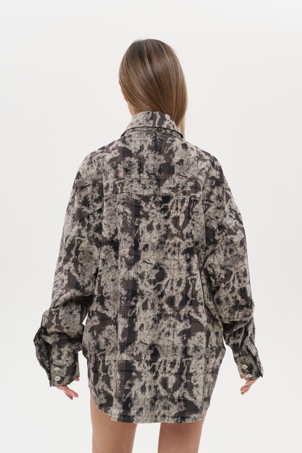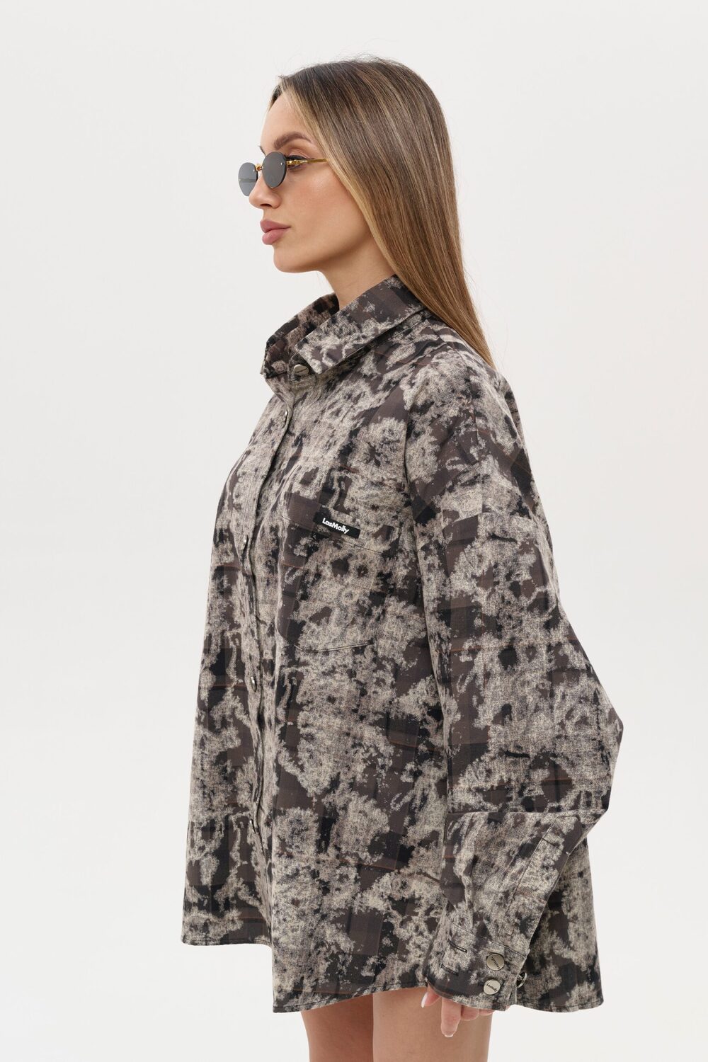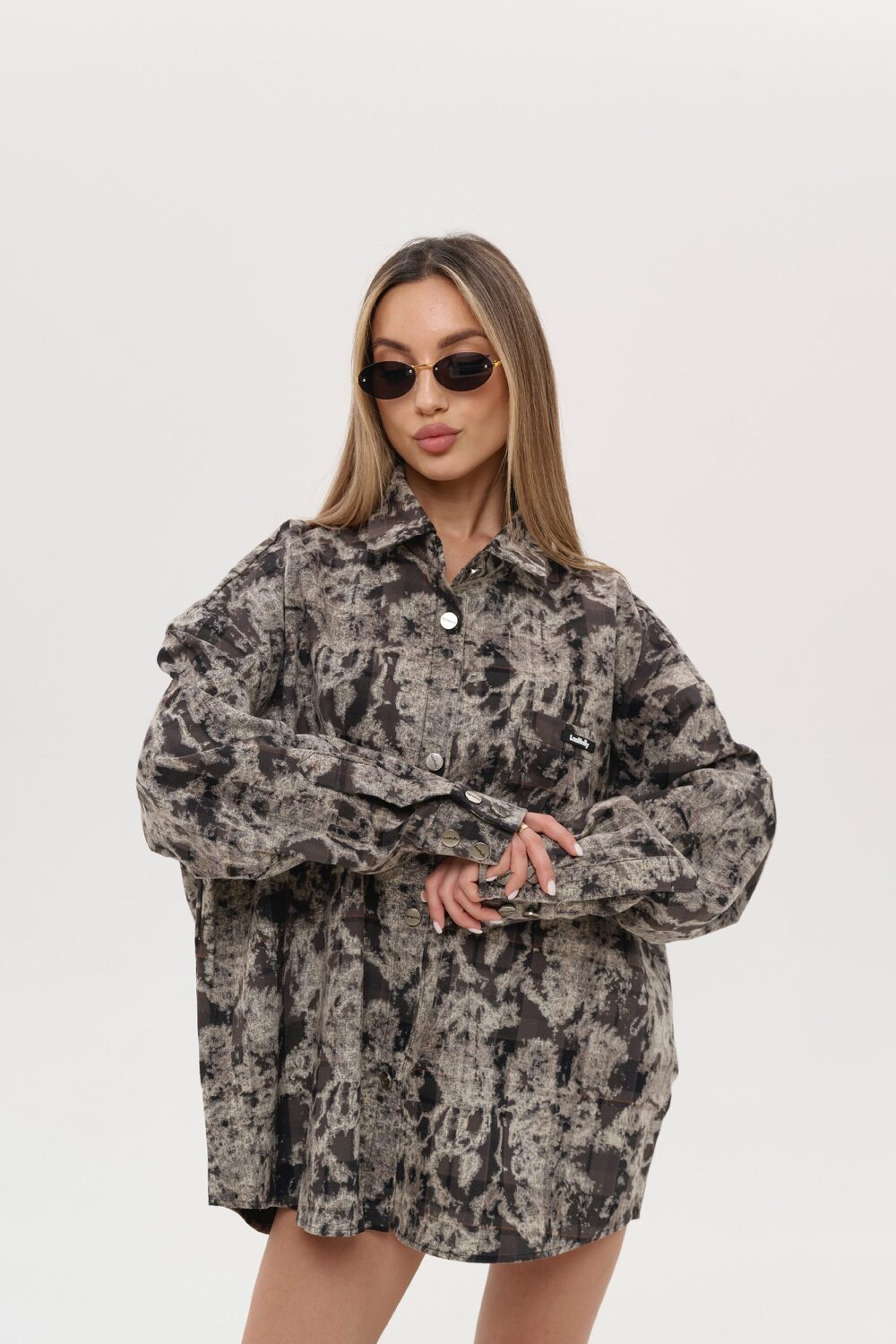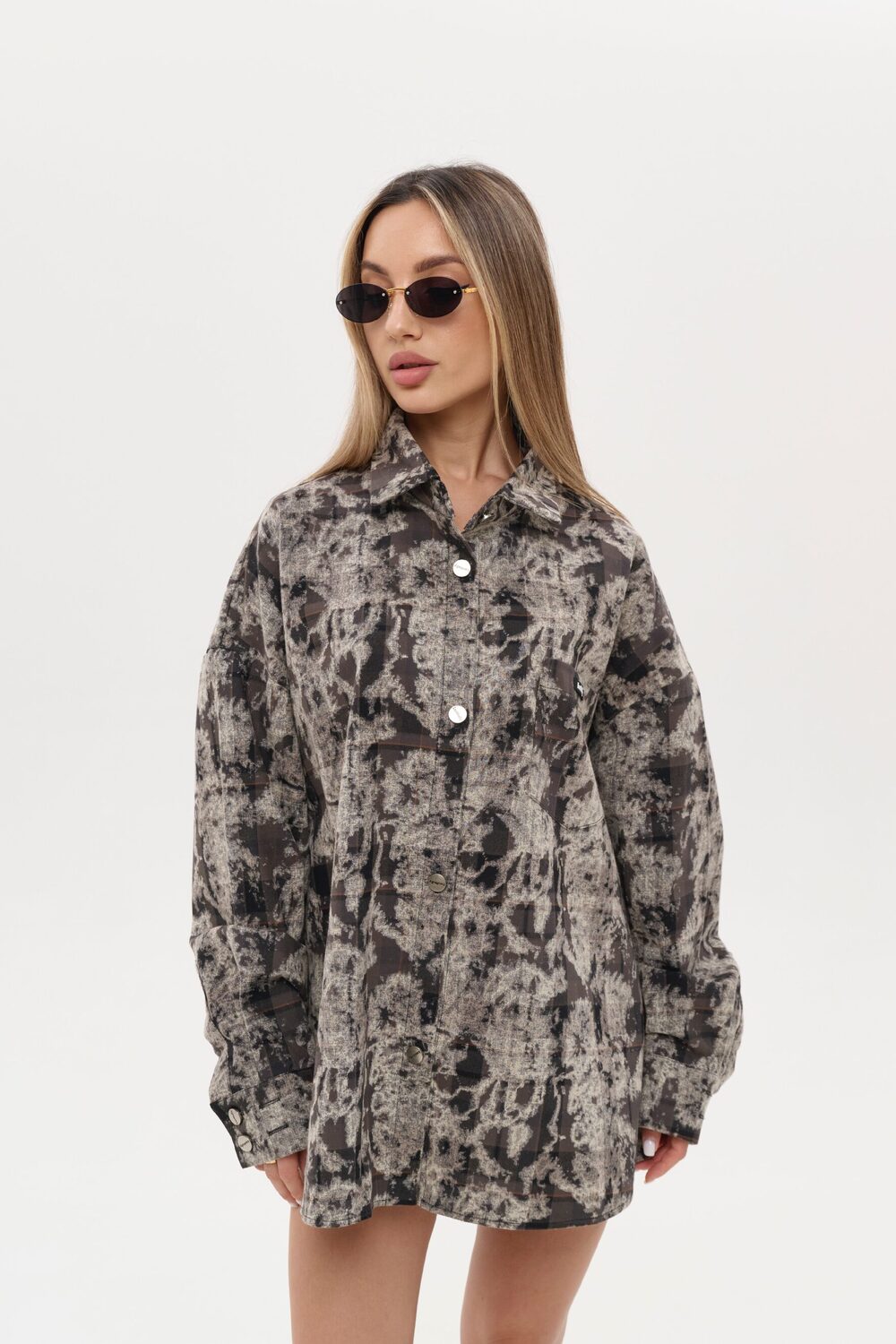 Рубашка с объемным кроем и текстурным принтом - задает тон современной непринужденности, сочетая свободу силуэта с деталями утонченного дизайна. Плотная ткань держит форму, создавая эффект легкой структуры без сковывания движений. Идеальна для тех, кто ценит комфорт в повседневности - от утренней прогулки до неформального вечера.