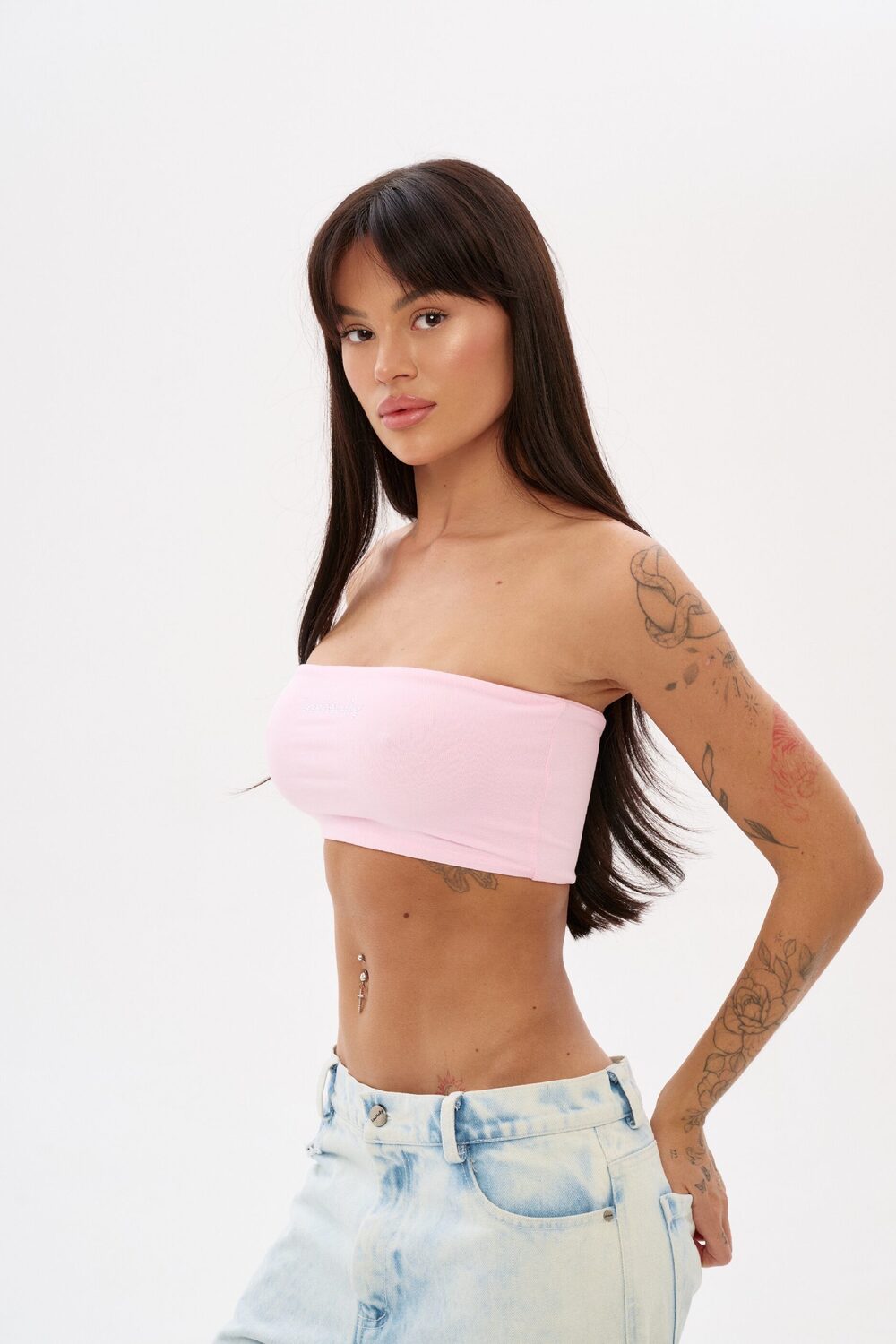 Топ-бандо с инкрустированным логотипом "LasMolly» -подчеркивает линию декольте и создает эффектный акцент. Плотная эластичная ткань идеально облегает фигуру, обеспечивая комфорт и свободу движений. Позволяет выглядеть стильно и уверенно в любом образе - идеален для тех, кто ценит базовый вещи с изюминкой.